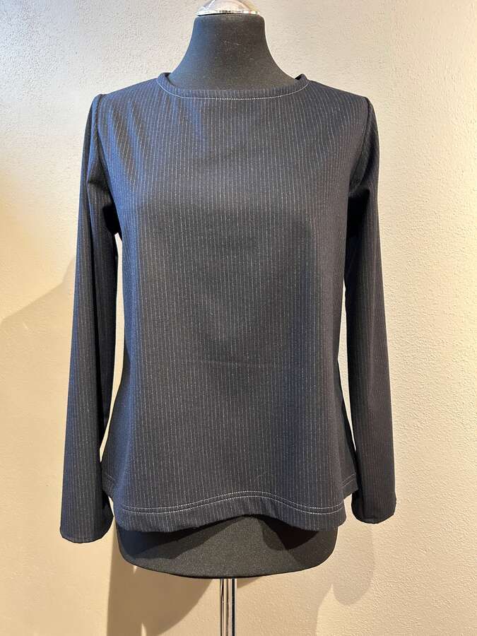 Feines Jerseyshirt in leicht aufgerauter Oberfläche. Mit silbernen Säumen, langen Ärmeln. Sehr weiche angenehme Qualität